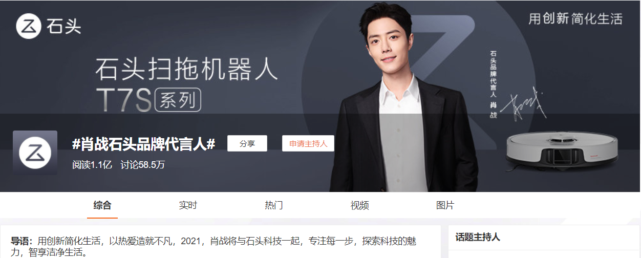 3月29日,石頭科技官方宣布肖戰(zhàn)為品牌代言人,并發(fā)布了全新的品牌TVC,視頻中肖戰(zhàn)一身白色西裝亮相,向大眾展現(xiàn)以心無(wú)旁騖的專注、堅(jiān)定 ...